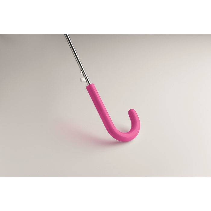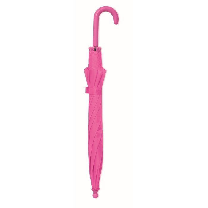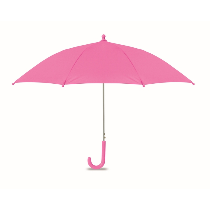 18 inch kids auto open umbrella. Metal shaft and ribs, 190T polyester. Handle, tips and top in PP. Dimensions: 46 cm