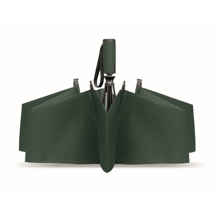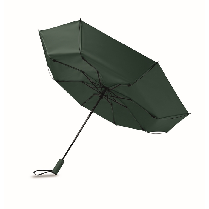 23-inch 3-fold reverse windproof umbrella made of 190T RPET pongee and matching pouch. Auto open and close, full black plating frame, fibreglass ribs, and a rubber-finished ABS handle. Rozměry: O107 x 62 cm