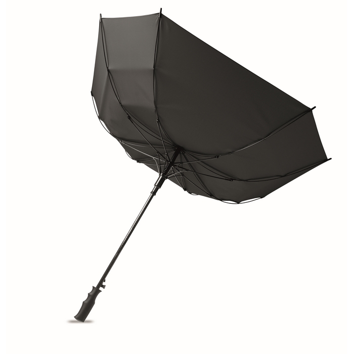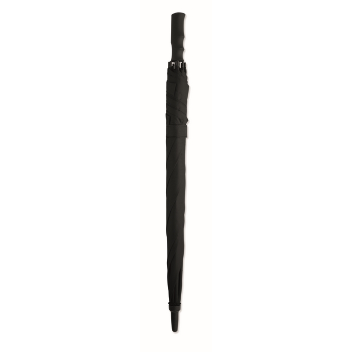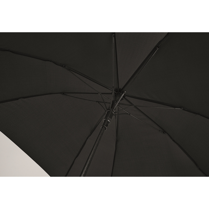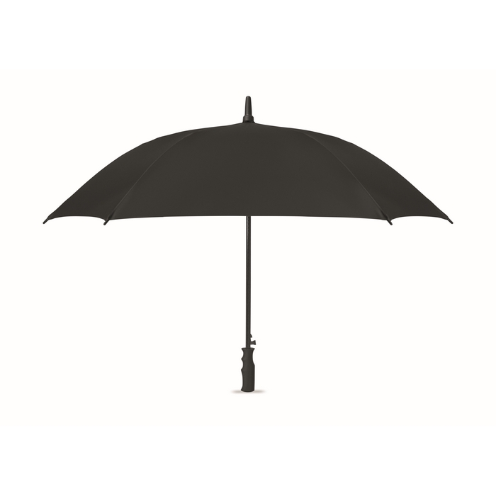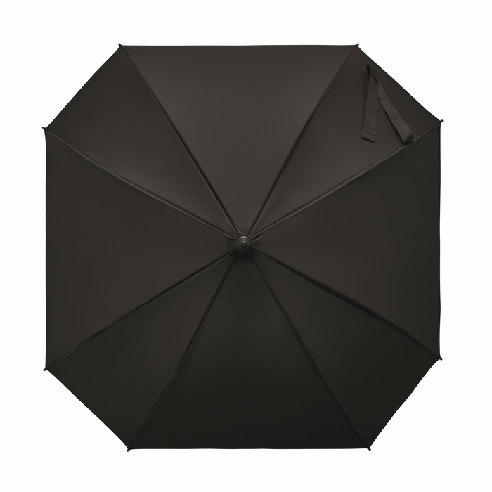 23-inch windproof auto-open square umbrella in 190T pongee polyester. Features full fibreglass frame and ribs, rubber-finished ABS handle. Rozměry: O104 x 79.5 cm