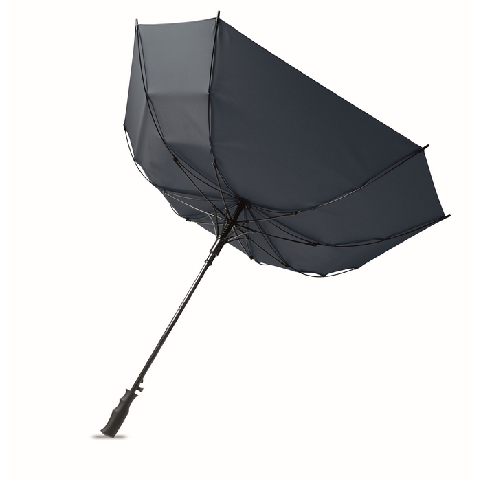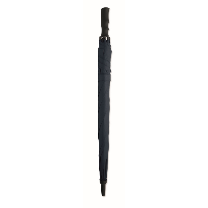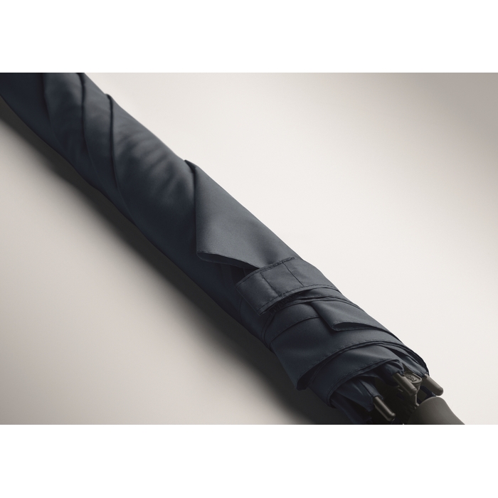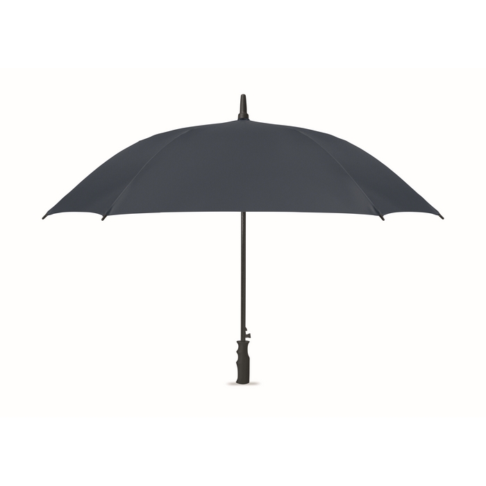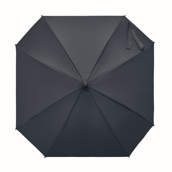 23-inch windproof auto-open square umbrella in 190T pongee polyester. Features full fibreglass frame and ribs, rubber-finished ABS handle. Rozměry: O104 x 79.5 cm