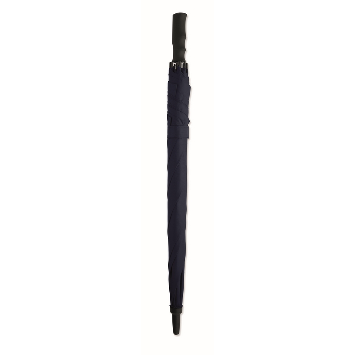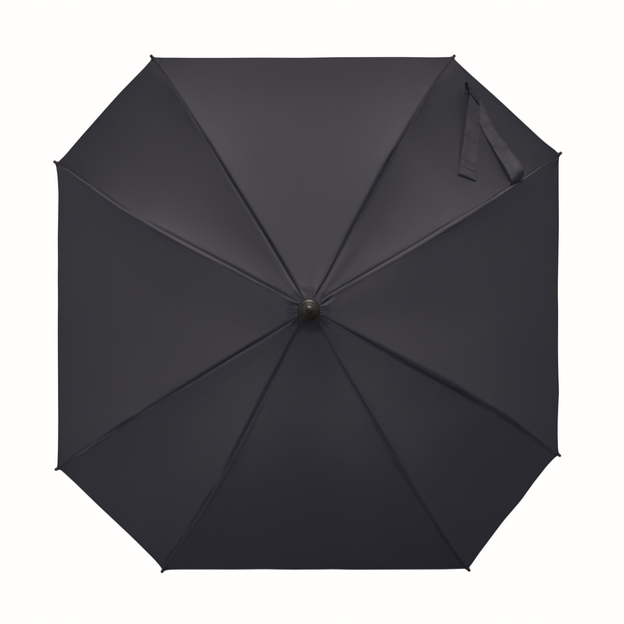 23-inch windproof auto-open square umbrella in 190T pongee polyester. Features full fibreglass frame and ribs, rubber-finished ABS handle. Rozměry: O104 x 79.5 cm