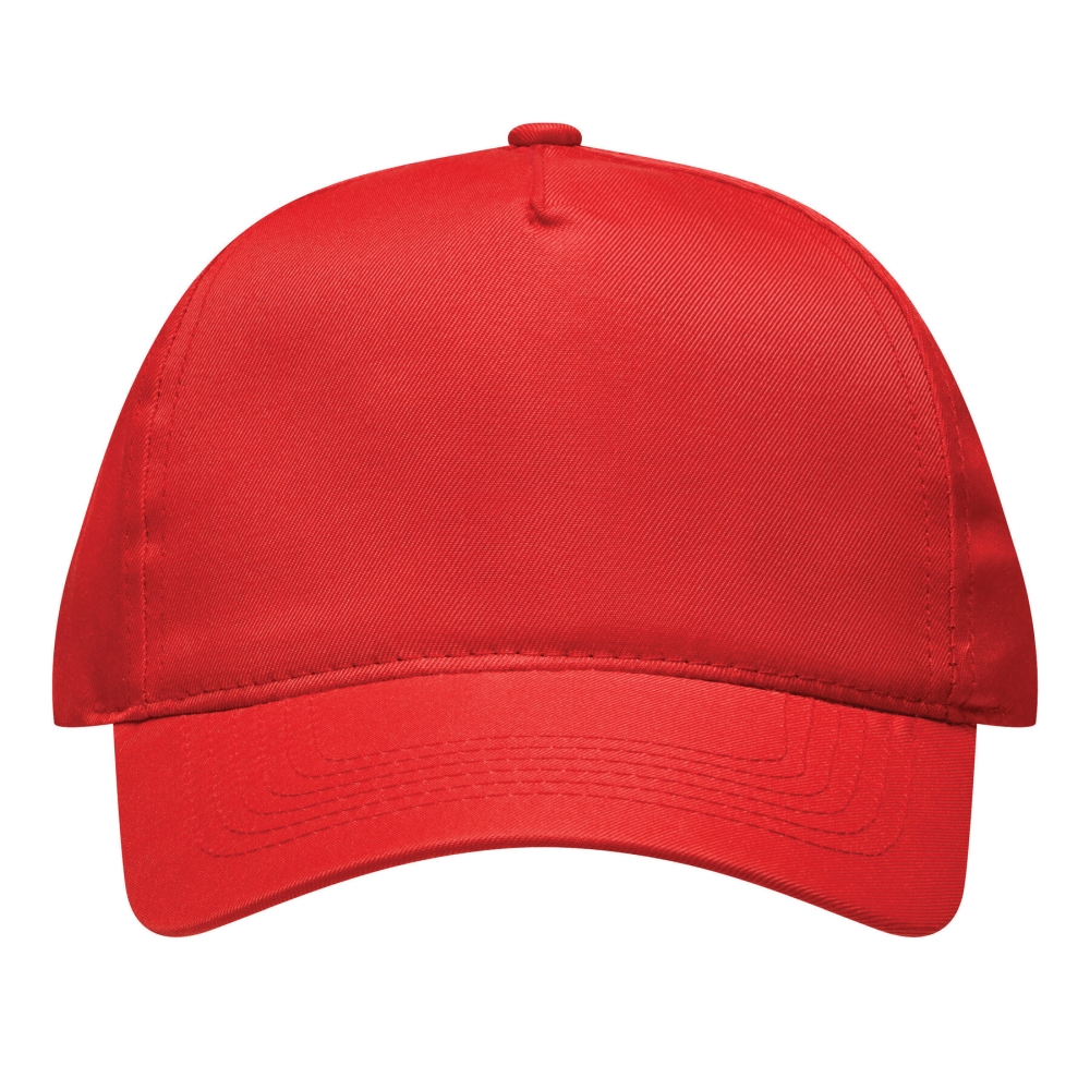 5-panel baseball cap: reinforced front panel, 4 ventilation eyelets, button on top, adjustable Velcro fastener at the back.