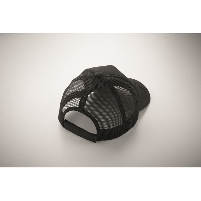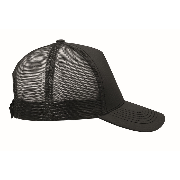 5 panel trucker cap with front panel and visor in 250 gr/m2 cotton, back mesh in polyester, hook and loop closure. Rozměry: 21 x 16 x 11.5 cm