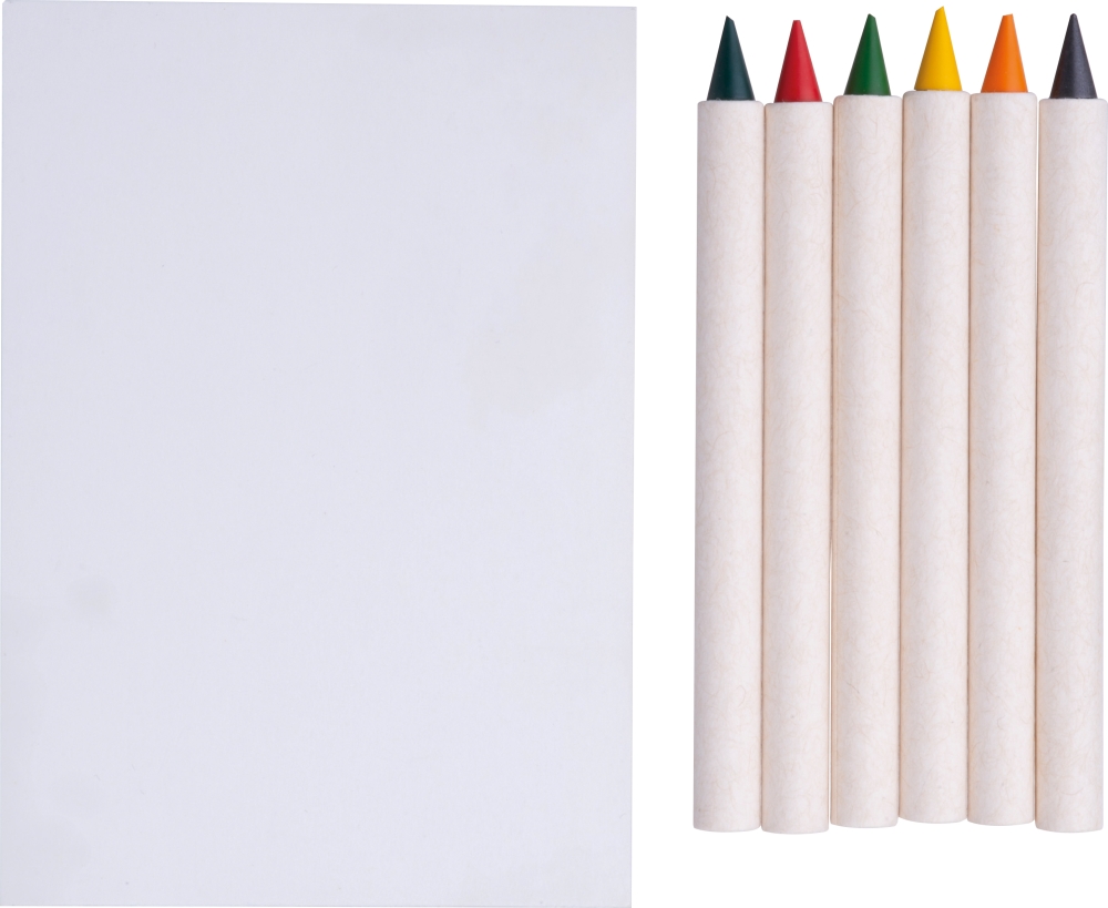 Creative set consisting of 6 erasable wax crayons, eraser, and coloring pad. Ideal for children and creative minds, compact and ready for use at home or on the go. Dimensions: 11 x 8 x 1,2 cm