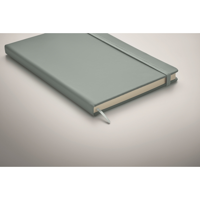 A5 notebook with hard PU cover. Casebound. 192 lined recycled paper pages (96 sheets). Matching elastic closure strap and ribbon page-marker. FSC®-certified | FSC MIX CREDIT, P7.1, FSC-C213206 Dimensions: 21 x 14 x 1.6 cm