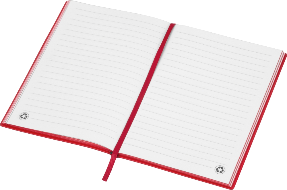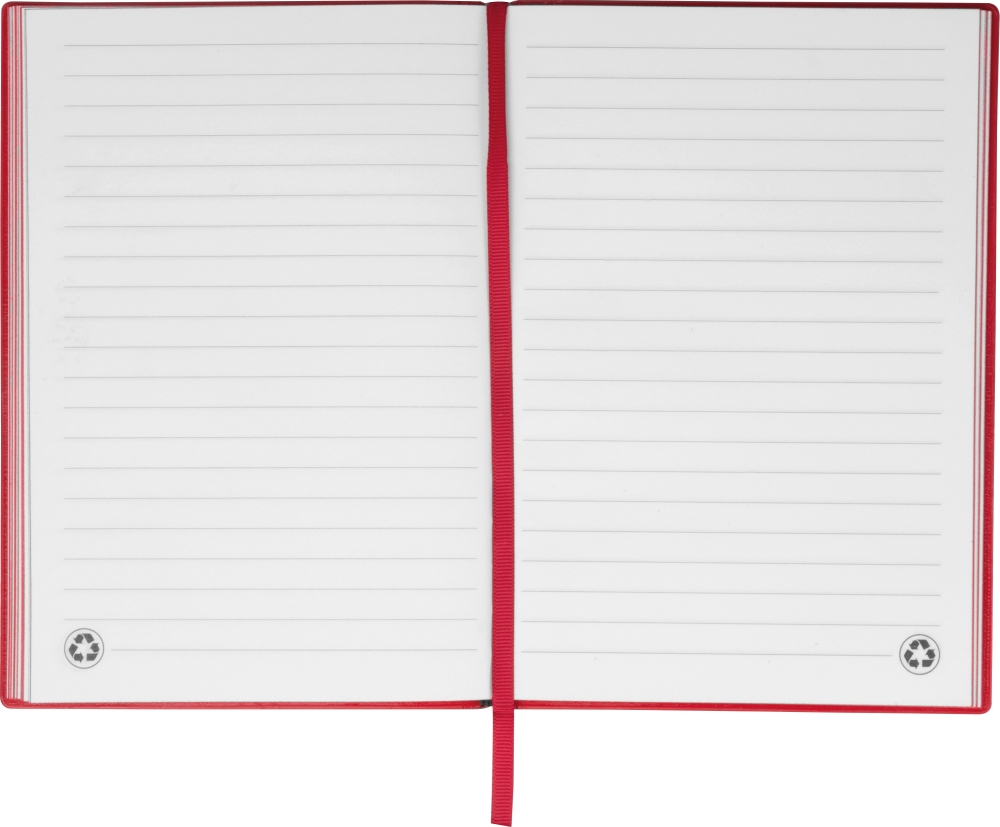 High-quality A5 notebook with 264 lined pages of recycled paper and a durable PU cover, ribbon bookmark. Ideal for notes, sketches, and meetings at the office or on the go. Dimensions: 14,8 x 1,2 x 21,1 cm
