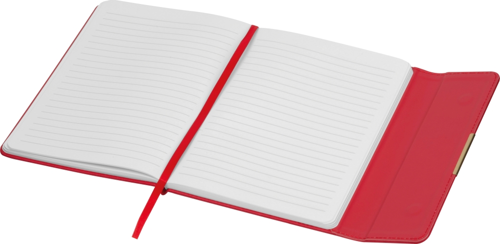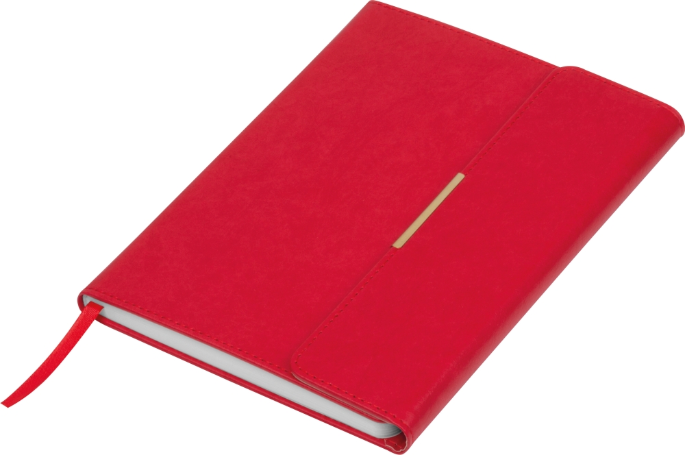 A5 notebook with magnetic closure, recycled PU cover, and 192 lined pages (96 sheets, 80 g/m2). Dimensions: 15,2 x 2 x 21 cm