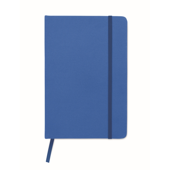 A5 notebook with hard 600D RPET cover. Casebound. 160 lined recycled paper pages (80 sheets). Matching elastic closure strap and ribbon bookmark. FSC®-certified | FSC MIX CREDIT, P7.1, FSC-C213206 Rozměry: 21 x 14 x 1.3 cm