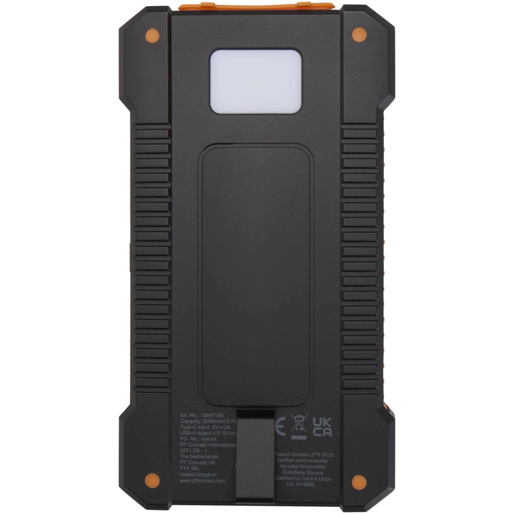 Altair 5000 mAh 10W recycled plastic rugged solar power bank with built-in torch, solid black