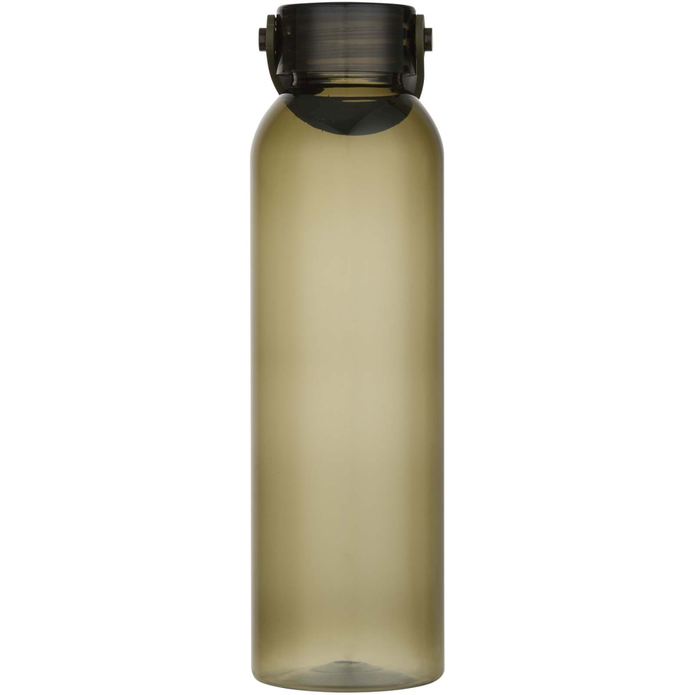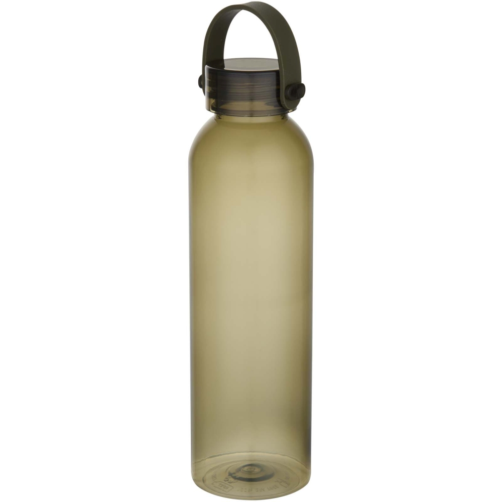 Water bottle made from RCS certified RPET, featuring a convenient silicone carry handle. In compliance with the EFSA approved PET recycling process. Volume capacity: 630 ml. Dimensions: 6,6 x 22,8 x 6,6 x O 6,6 cm