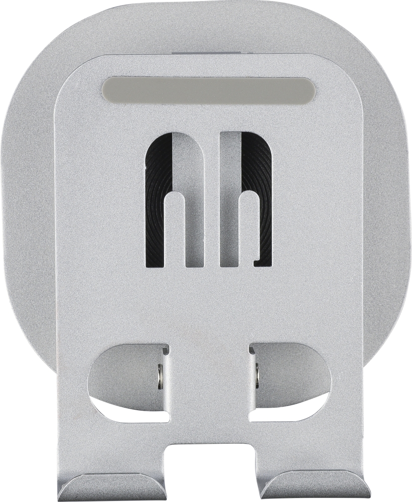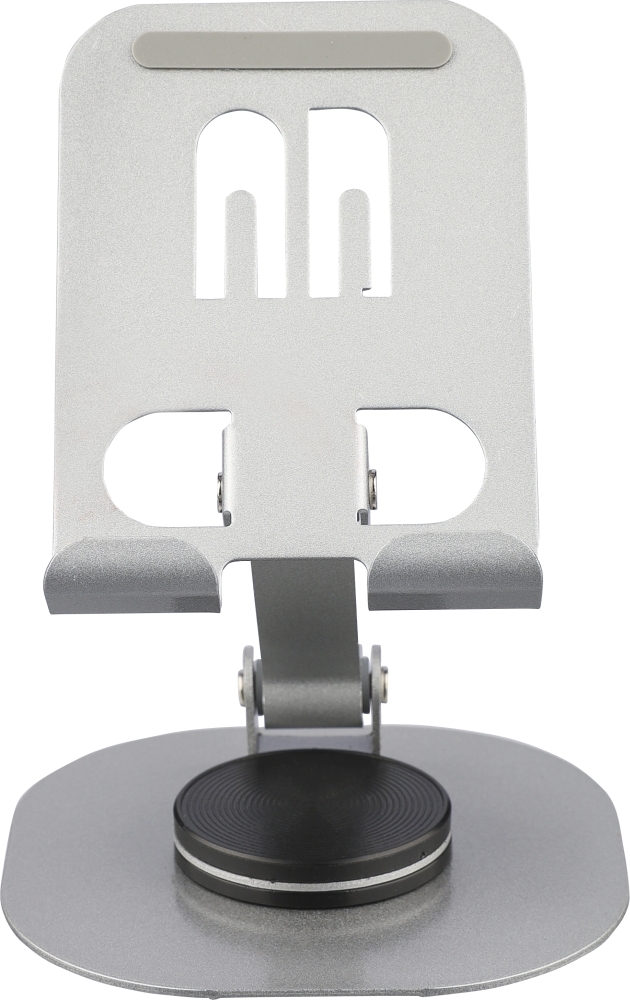 Aluminium alloy phone stand with 360-degree rotation function. Can be fully folded flat for easy storage. Sturdy and weighty design for stable support. Individually packaged in a white box. Dimensions: 1,8 cm x 8,2 cm