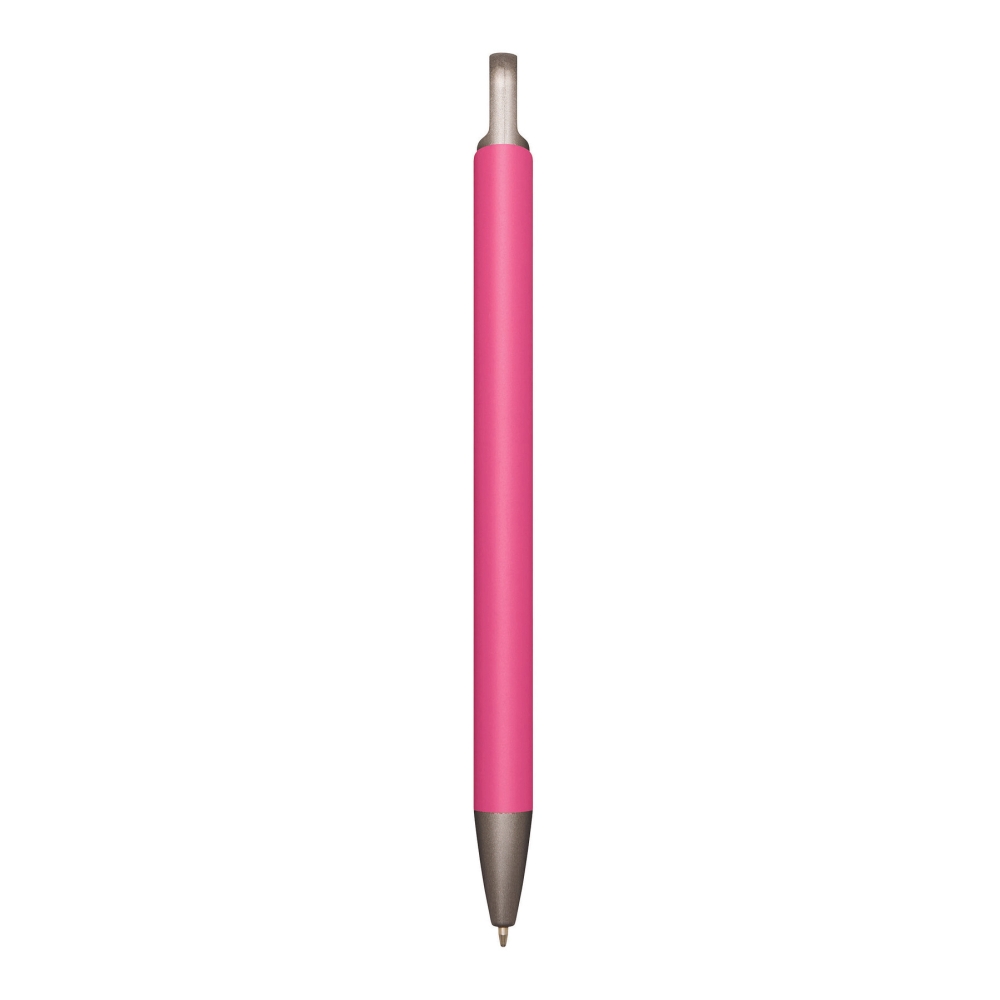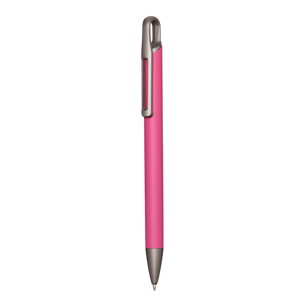 Aluminium ballpoint pen with matte aluminium barrel, push mechanism, blue ink. Dimensions: 14 cm