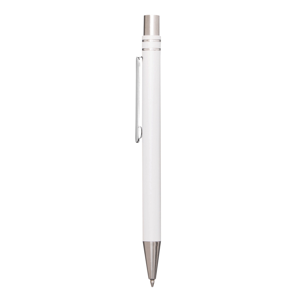 Aluminium gel ballpoint pen with matte aluminium barrel, push mechanism, jumbo gel refill, blue ink. Dimensions: 14 cm