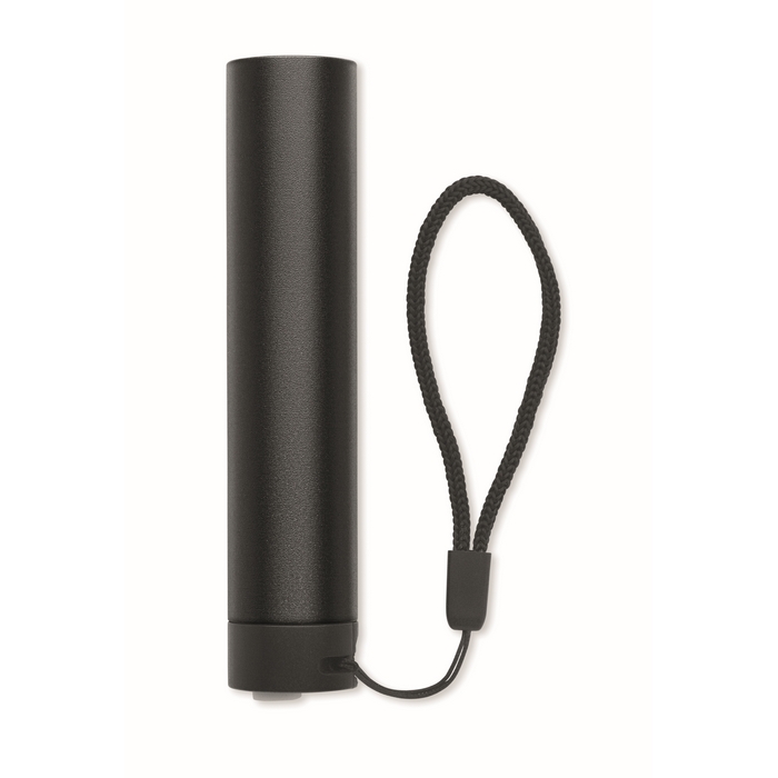 Recycled aluminium rechargeable torch 110 lumen with 3 light settings. 1 replaceable and rechargeable 14500 lithium battery 400 mAh. Dimensions: 2.1 x 2.1 x 10 cm
