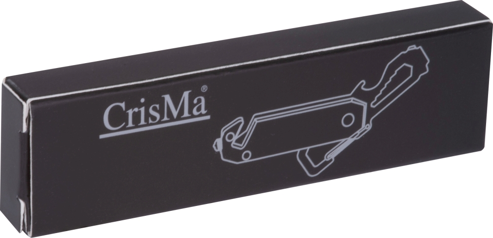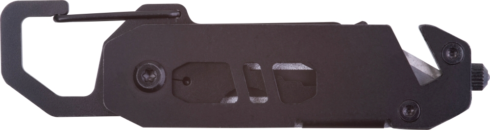 Multitool with an aluminum casing and stainless steel tools, 12-piece. Equipped with 3–8 mm wrenches, Phillips screwdriver, flathead screwdriver, carabiner, bottle opener, seatbelt cutter, and safety hammer for breaking glass. Dimensions: 8,8 x 2,2 x 0,8 cm