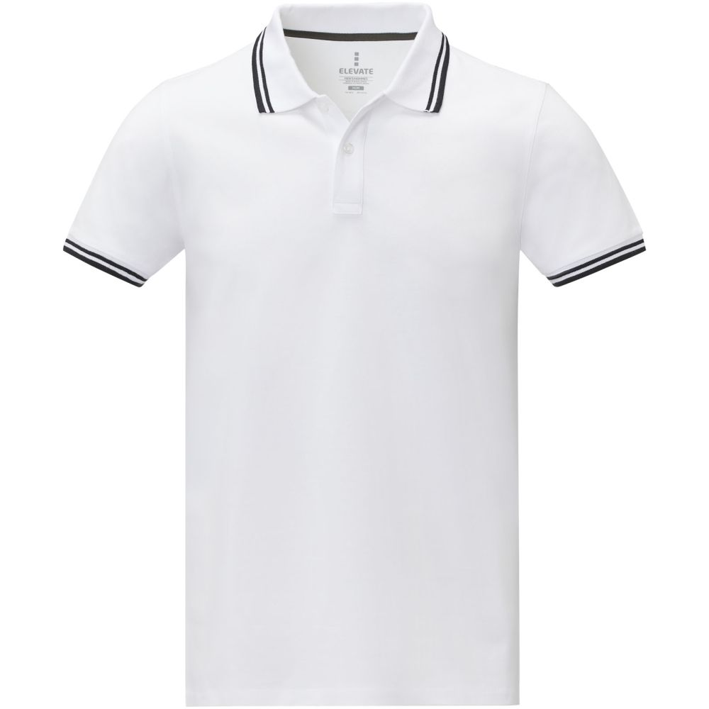 Flat knit collar. Flat knit rib cuffs. Contrast coloured tipping on collar and sleeves. Two button placket. Pick-stitch details. Satin neck tape. Side slits with satin tape finishing. Half-moon. Forward shoulder seam with chain stitching. Dyed-to-match engraved buttons. Heat transfer main label for tagless comfort.