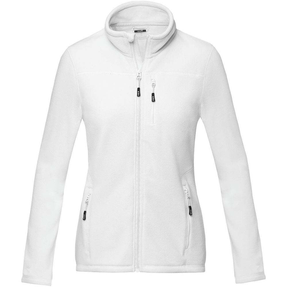 GRS recycled center front zipper coil zipper. Inner stormflap with chinguard. Front pockets with zipper. Chest pocket with zipper closure. Easy grip zipper pullers. Branded hangerloop. Necktape. Halfmoon. Heat transfer main label for tagless comfort.