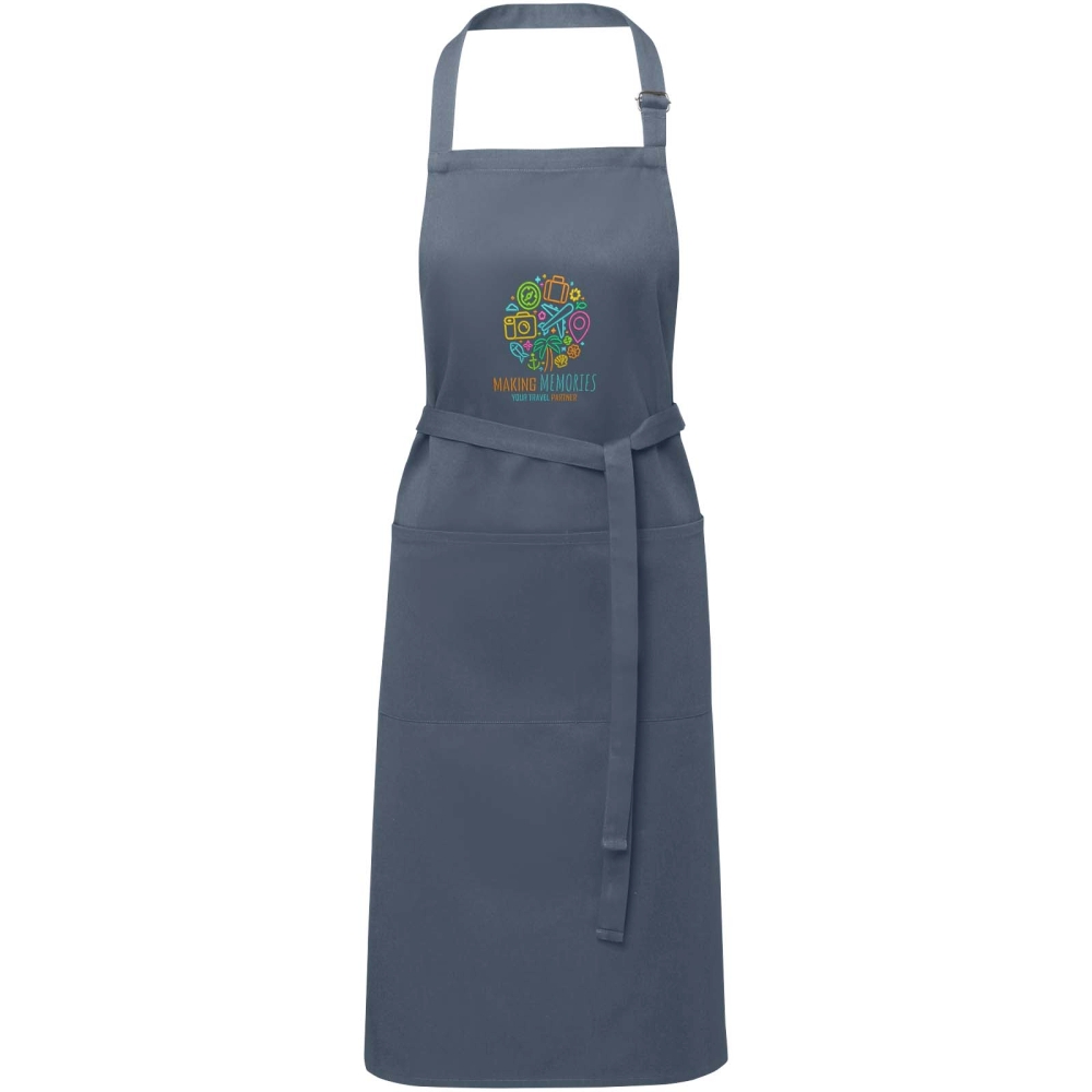 Protecting beautiful clothes while cooking is easy with the Andrea apron. The apron consists of 240 g/m2 twill (65% polyester and 35% cotton), which makes it thick and sturdy, while still soft and comfortable to wear. The two front pockets offer a quick and easy way to store kitchen essentials. The apron is adjustable with a buckle around the neck and a tie back closure, making it one-size-fits-all. Multiple large print options for maximum logo exposure. Dimensions: 100 x 70 cm