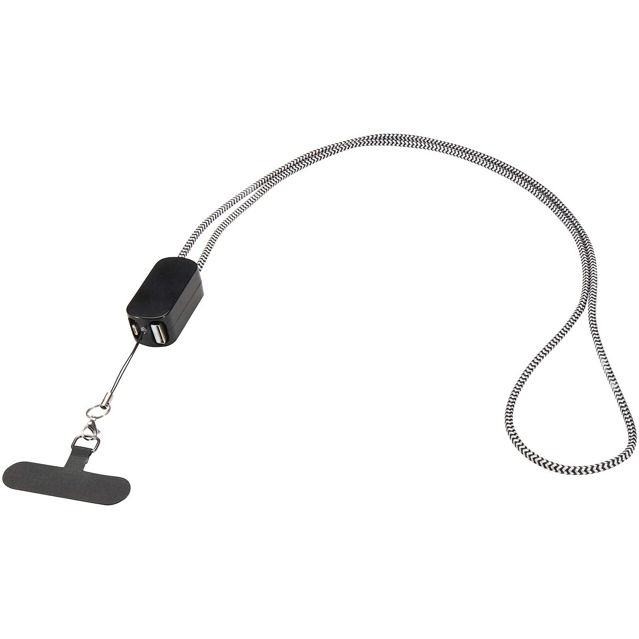 Stay charged and connected on the go with the Anser smartphone lanyard. Made from recycled materials, it includes a built-in 27W 5-in-1 charging cable with USB-A and Type-C input and Type-C and Lightning output. A transparent insert secures your phone through its case, combining hands-free convenience with fast charging in one practical accessory. Dimensions: 5 x 2 x 2 cm