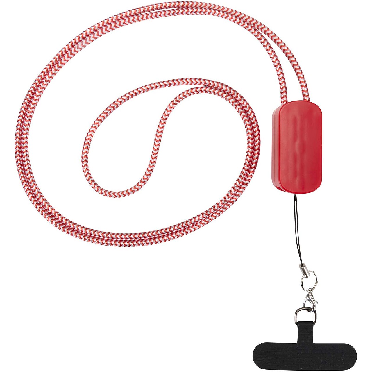 Anser recycled plastic smartphone lanyard with 27W 5-in-1 built-in cable, red