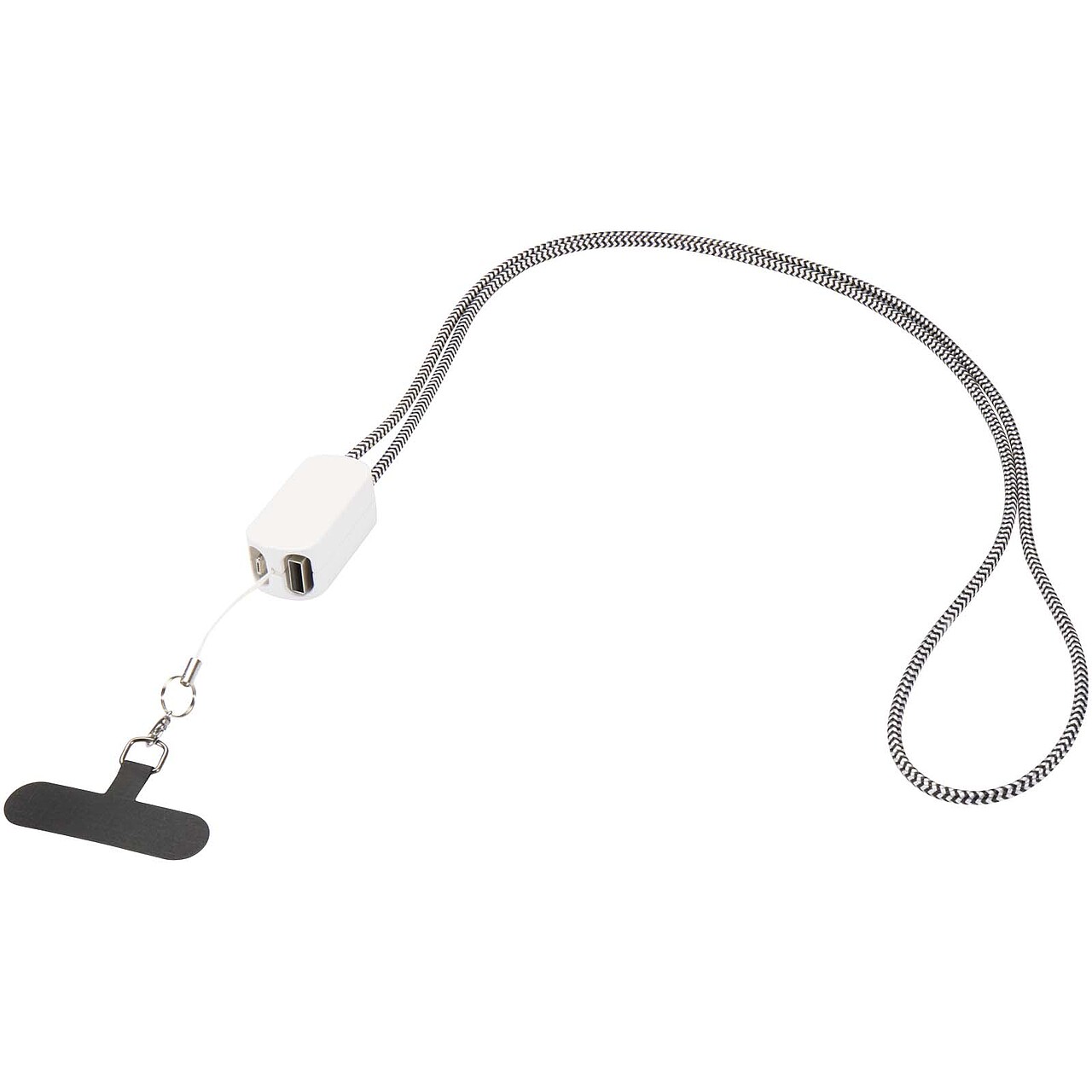 Stay charged and connected on the go with the Anser smartphone lanyard. Made from recycled materials, it includes a built-in 27W 5-in-1 charging cable with USB-A and Type-C input and Type-C and Lightning output. A transparent insert secures your phone through its case, combining hands-free convenience with fast charging in one practical accessory. Dimensions: 5 x 2 x 2 cm