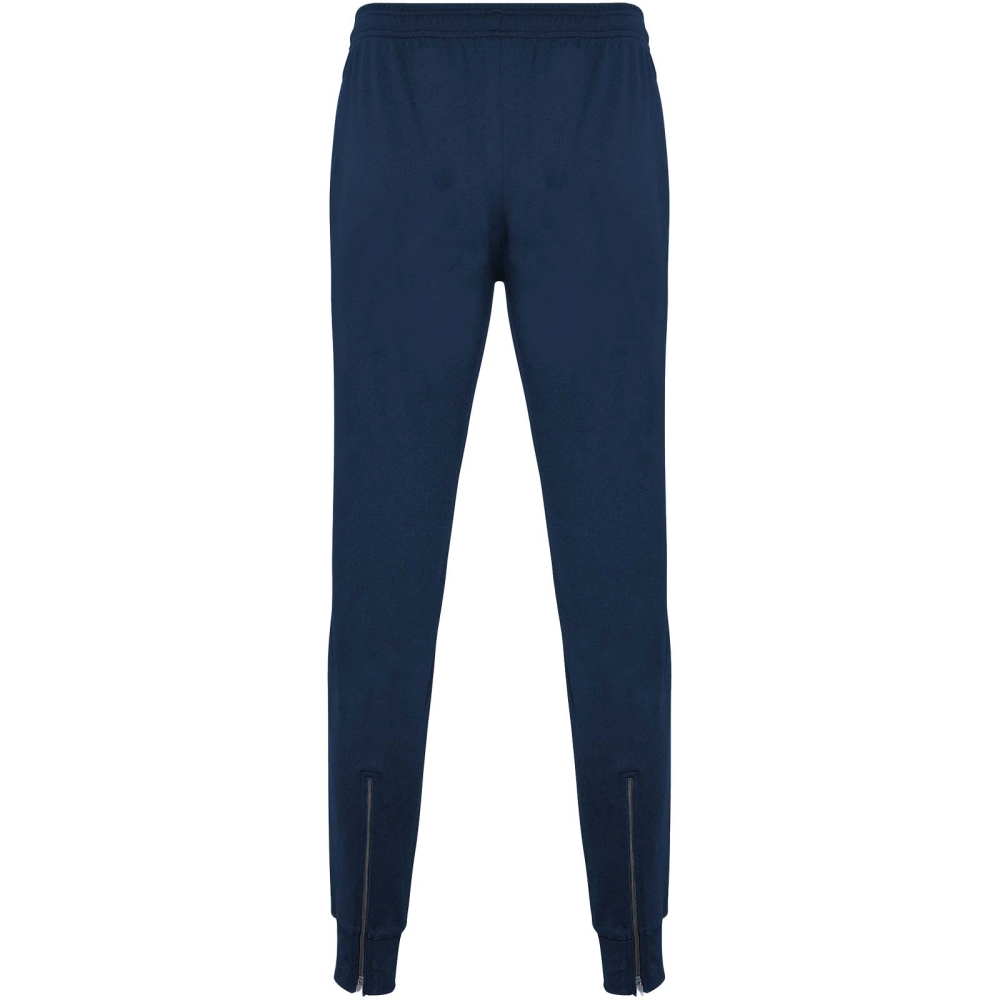 Trousers with adjustable elastic waistband with inner drawcord. Side pockets. Cuffs and zip on bottom leg. Removable label.