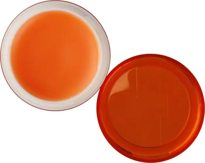 AS colored transparent jar with 12 g lip balm. The lip balm matches the color and is available in four flavors: vanilla (21), strawberry (08), orange (07) and blueberry (24). Dimensions: 3,4 cm x 4 cm