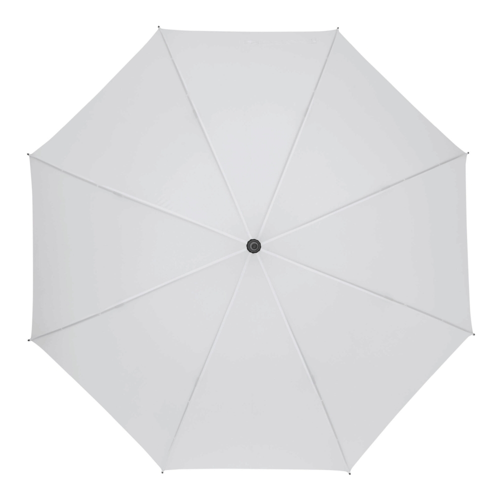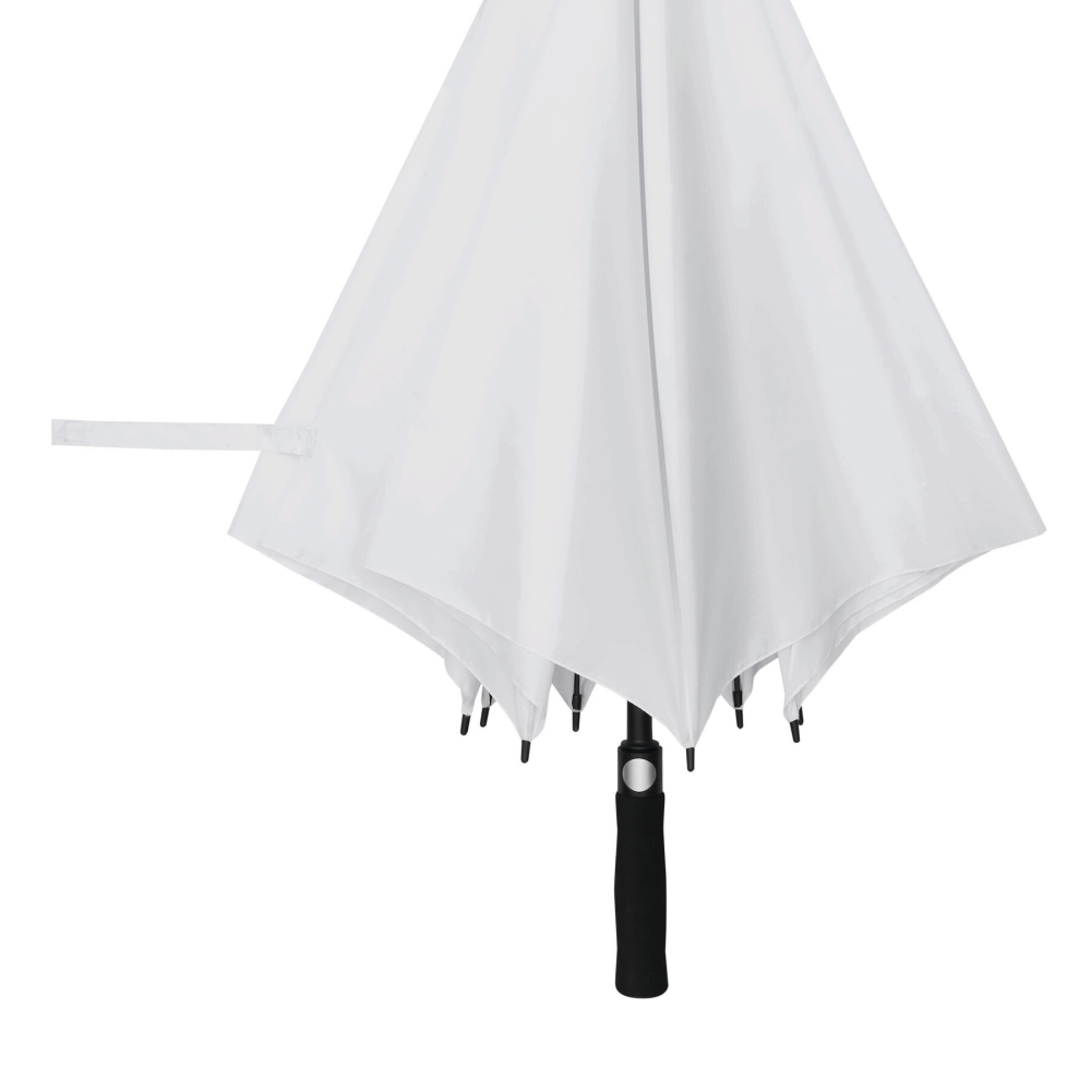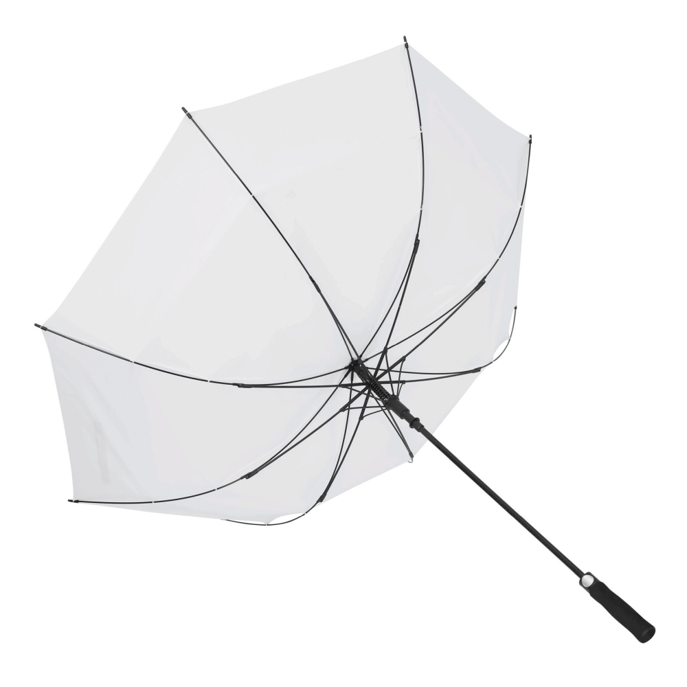 Automatic golf umbrella with fibreglass shaft, fibreglass ribs, plastic tips, EVA handle with integrated press button, polyester pongee canopy made from recycled plastic / rPET, closing strap with Velcro. Dimensions: O130 / 102 cm
