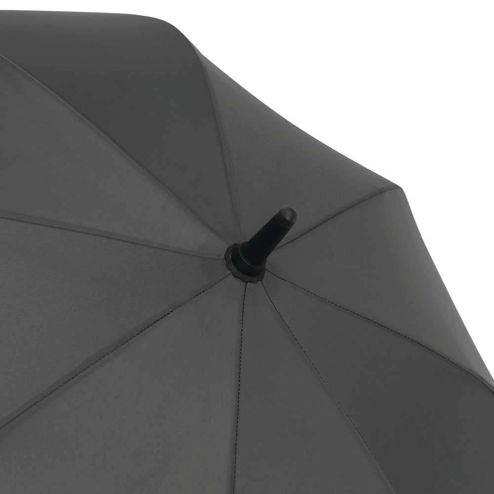 Automatic stick umbrella with fibreglass shaft, fibreglass ribs, plastic tips, plastic handle in carbon optic with integrated press button and carrying loop, premium quality polyester pongee canopy, closing strap with Velcro. Dimensions: O106 / 81,5 cm