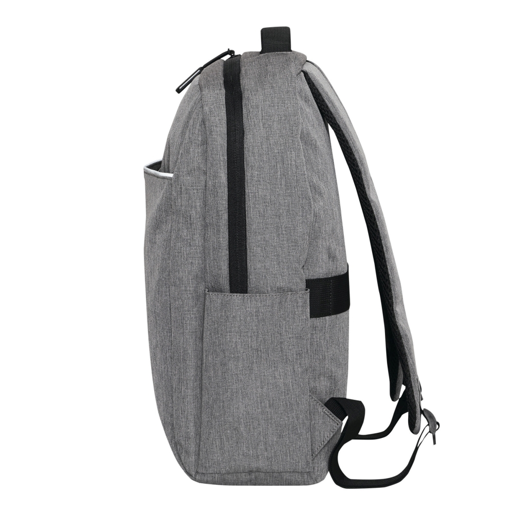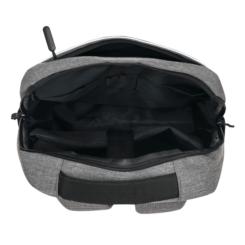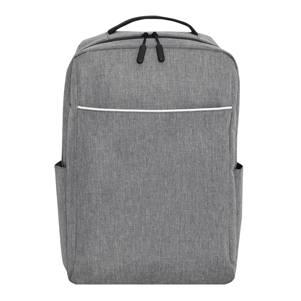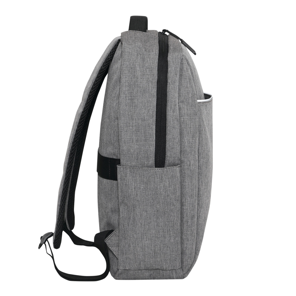 Backpack made of recycled polyester (rPET), 1 zipped front pocket with reflector strip, zipped main compartment with padded interior compartment for laptop or tablet, organiser with 4 slip-in pockets, 2 lateral slip-in pockets, padded grab handle, padded and adjustable shoulder straps, trolley sleeve. Dimensions: 41 x 11 x 28 cm