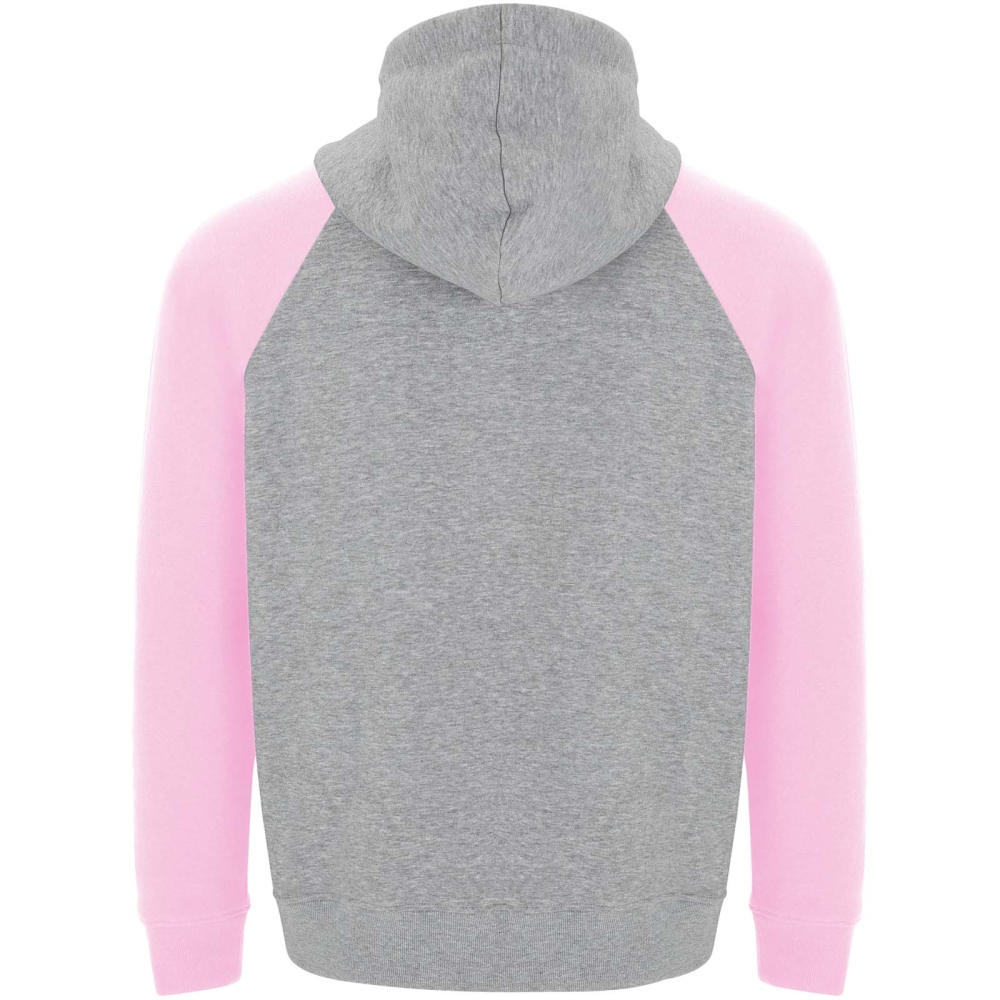 Two-colour unisex hoodie. Hood with crossed neck and metal eyelets. Contrasting inner hood, drawcord and raglan sleeves. Kangaroo pocket. Cuffs and hem in 1x1 elastane rib knit. Removable label.