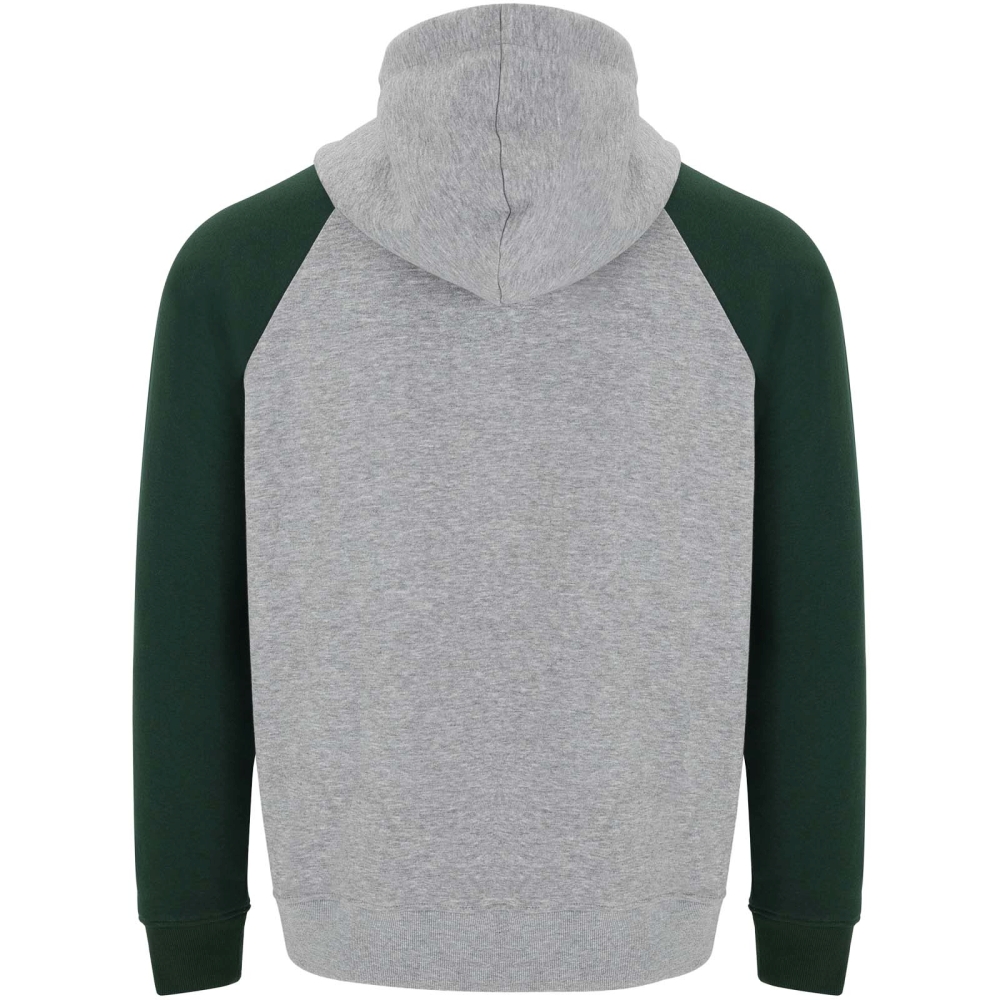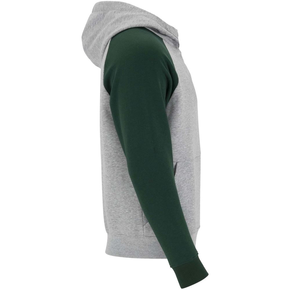 Two-colour unisex hoodie. Hood with crossed neck and metal eyelets. Contrasting inner hood, drawcord and raglan sleeves. Kangaroo pocket. Cuffs and hem in 1x1 elastane rib knit. Removable label.
