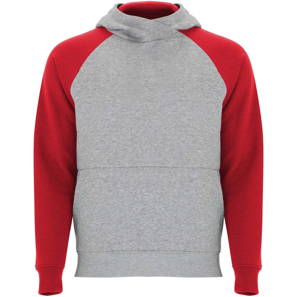 Two-colour unisex hoodie. Hood with crossed neck and metal eyelets. Contrasting inner hood, drawcord and raglan sleeves. Kangaroo pocket. Cuffs and hem in 1x1 elastane rib knit. Removable label.