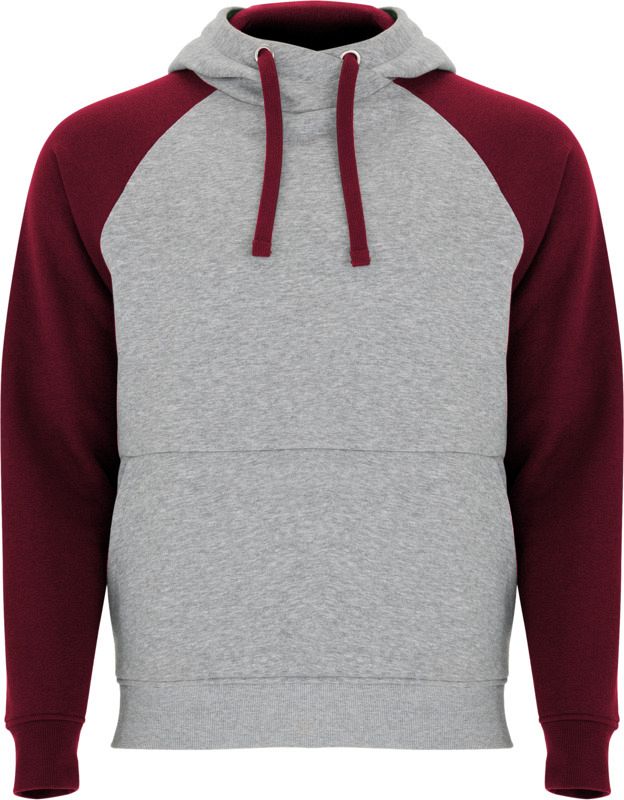 Two-colour unisex hoodie. Hood with crossed neck and metal eyelets. Contrasting inner hood, drawcord and raglan sleeves. Kangaroo pocket. Cuffs and hem in 1x1 elastane rib knit. Removable label. Brushed back sweater knit of 50% Cotton and 50% Polyester, 280 g/m2.