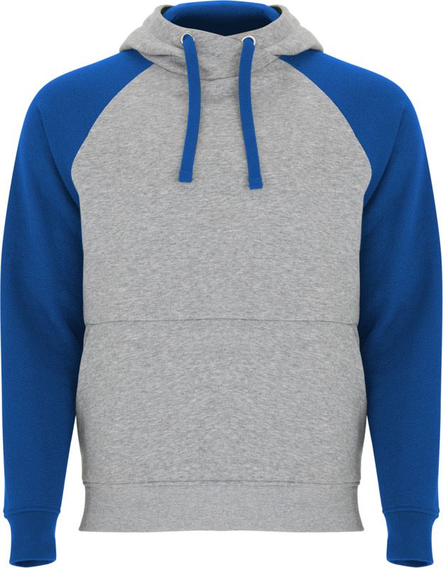Two-colour unisex hoodie. Hood with crossed neck and metal eyelets. Contrasting inner hood, drawcord and raglan sleeves. Kangaroo pocket. Cuffs and hem in 1x1 elastane rib knit. Removable label. Brushed back sweater knit of 50% Cotton and 50% Polyester, 280 g/m2.