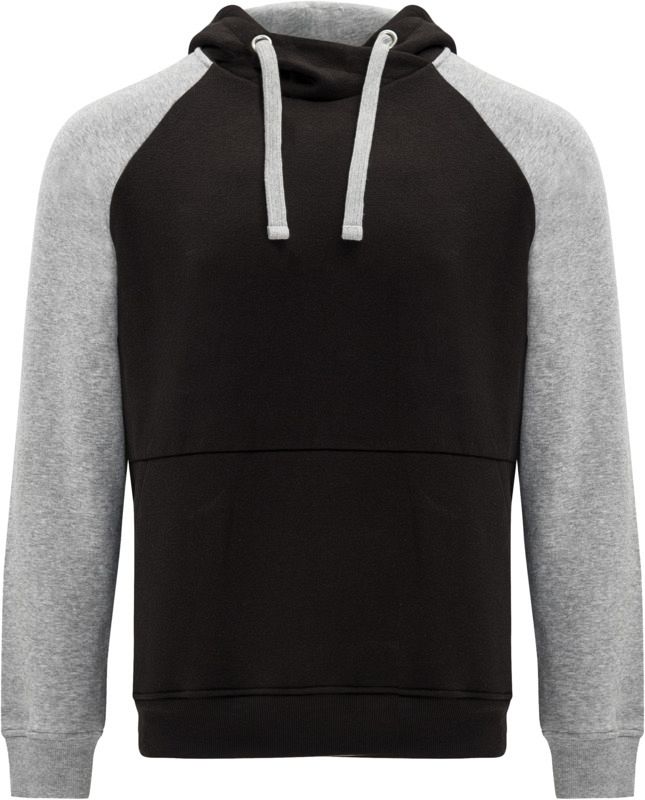Two-colour unisex hoodie. Hood with crossed neck and metal eyelets. Contrasting inner hood, drawcord and raglan sleeves. Kangaroo pocket. Cuffs and hem in 1x1 elastane rib knit. Removable label. Brushed back sweater knit of 50% Cotton and 50% Polyester, 280 g/m2.