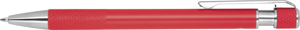 Ball pen with patterned grip zone, red