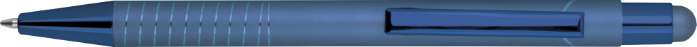 Ballpoint pen with integrated touch pen for smartphones and tablets. Features a glossy color-mirror finish, blue ink. Dimensions: o 1 x 14,5 cm