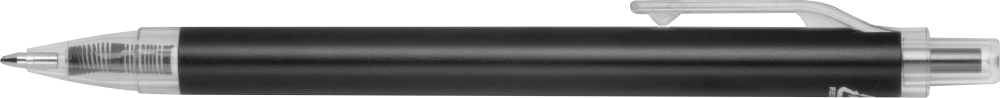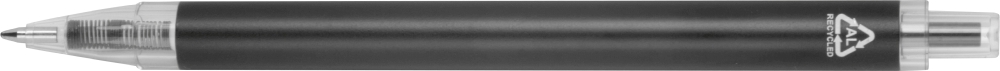 Ballpoint pen made from recycled aluminum and recycled plastic (RPET) with transparent clip and blue ink refill. Dimensions: o 1 x 14,2 cm