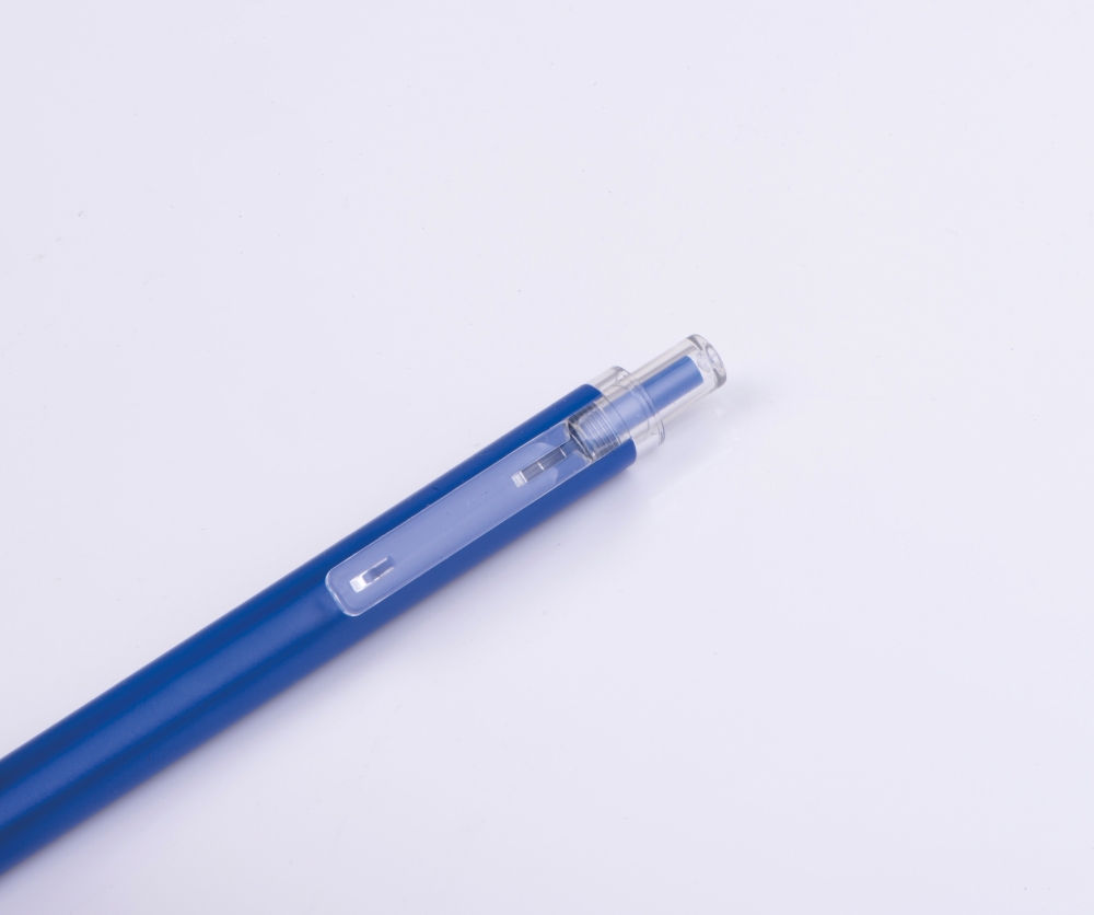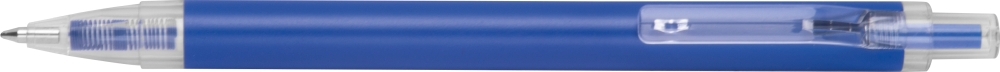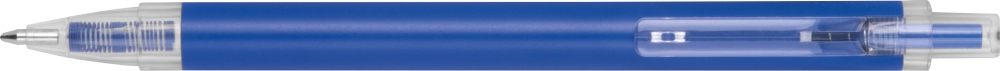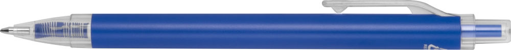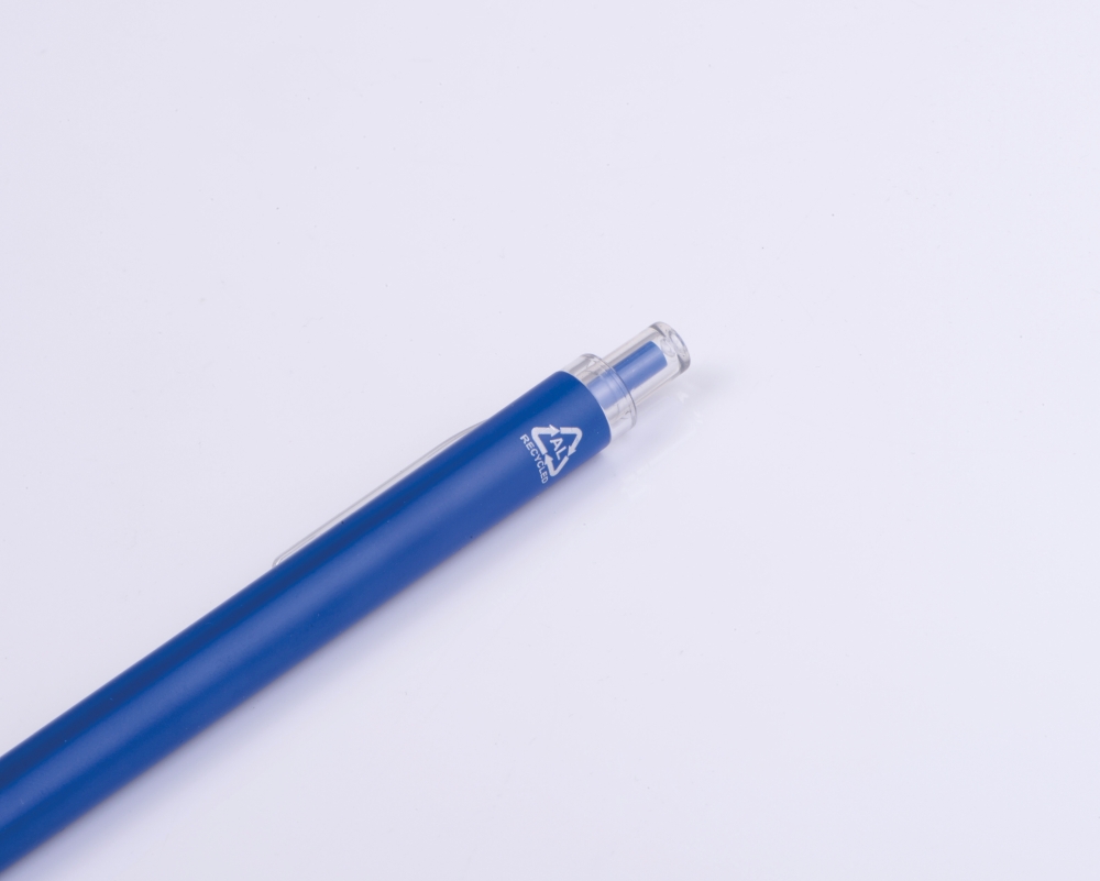 Ballpoint pen made from recycled aluminum and recycled plastic (RPET) with transparent clip and blue ink refill. Dimensions: o 1 x 14,2 cm