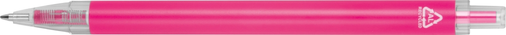 Ballpoint pen made from recycled aluminum and recycled plastic (RPET) with transparent clip and blue ink refill. Dimensions: o 1 x 14,2 cm