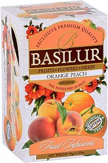 Recharge life with the health benefits of chicory and hibiscus roots. This wonderful blend of exotic delicacies is complemented by the aroma of blood orange and peach. Flavored fruit tea, portioned Ingredients: hibiscus flower 51%, chicory leaf 15%, orange fruit 12%, blackberry leaf 12%, natural aroma (orange, peach) Weight: 45g (25x1.8g)