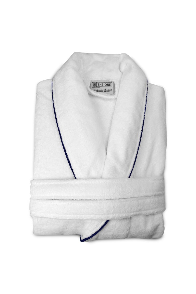 Bathrobe DeLuxe velour, 450 gr./m2, White / Navy Piped XXL/3XL
