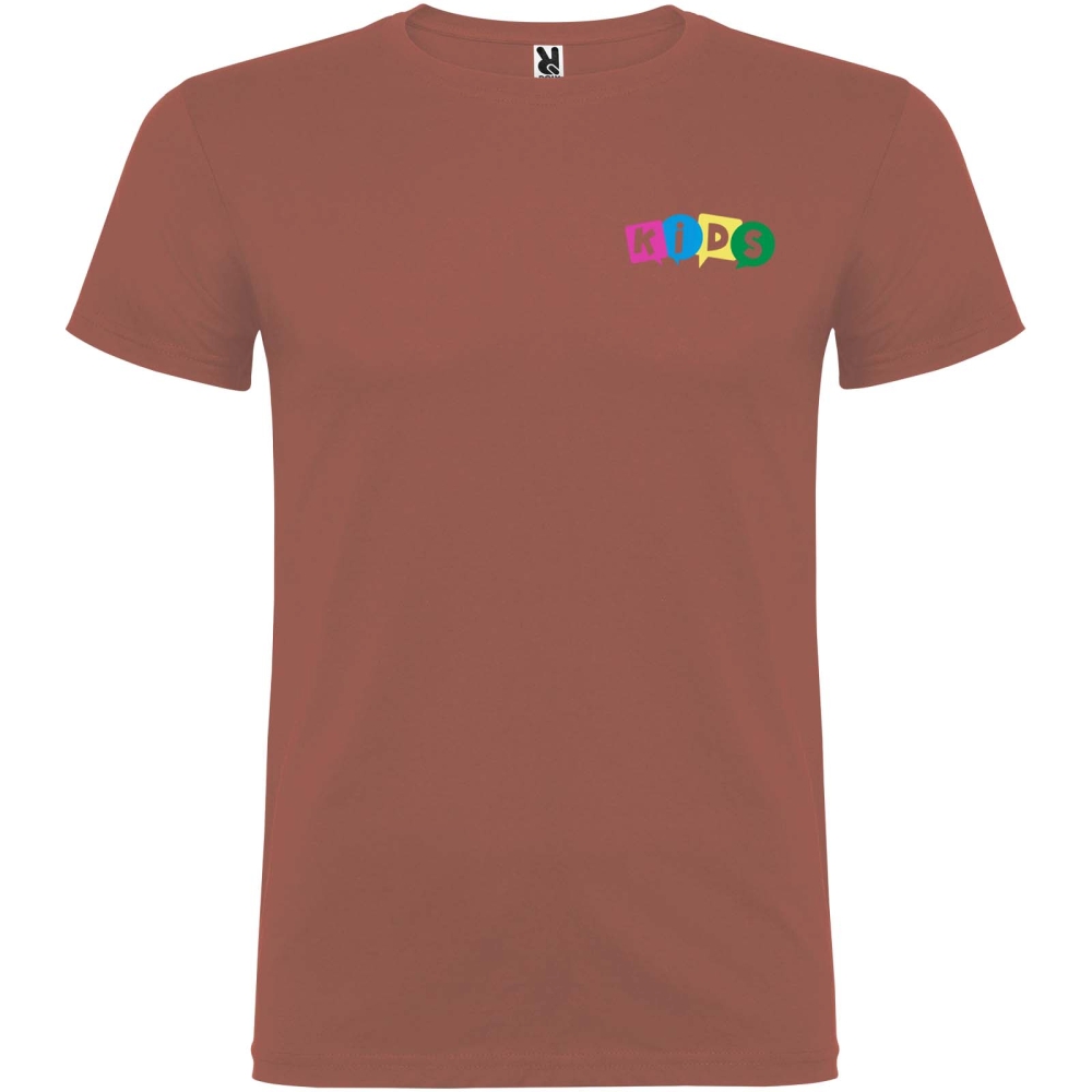 Short-sleeve t-shirt with double layer crew neck in elastane made from tubular fabric. Reinforced covered seams in collar. Removable label. The model is 120 cm and is wearing size 5/6.