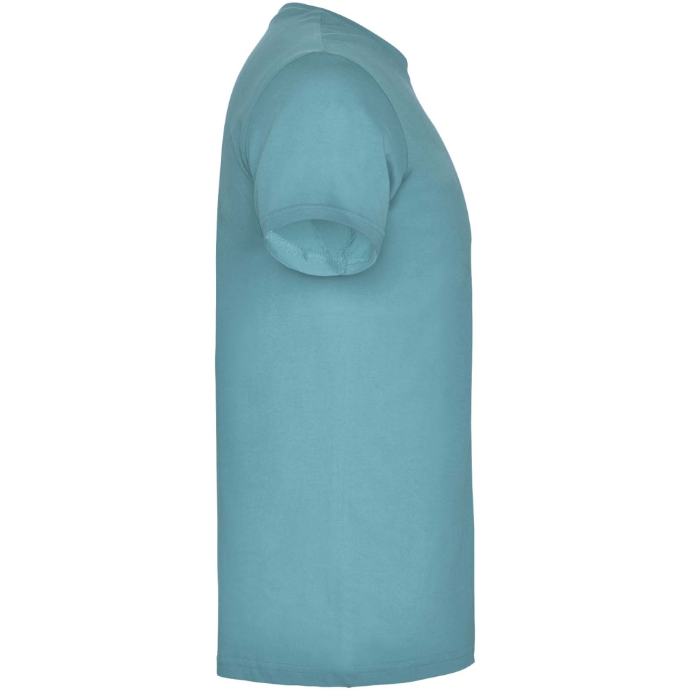 Short-sleeve t-shirt with double layer crew neck in elastane made from tubular fabric. Reinforced covered seams in collar. Removable label. The model is 120 cm and is wearing size 5/6.