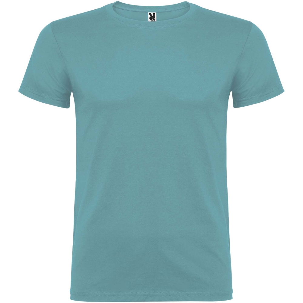 Short-sleeve t-shirt with double layer crew neck in elastane, made in tubular fabric for adults. Reinforced covered seams in collar. Removable label. The model is 190 cm and is wearing size L.