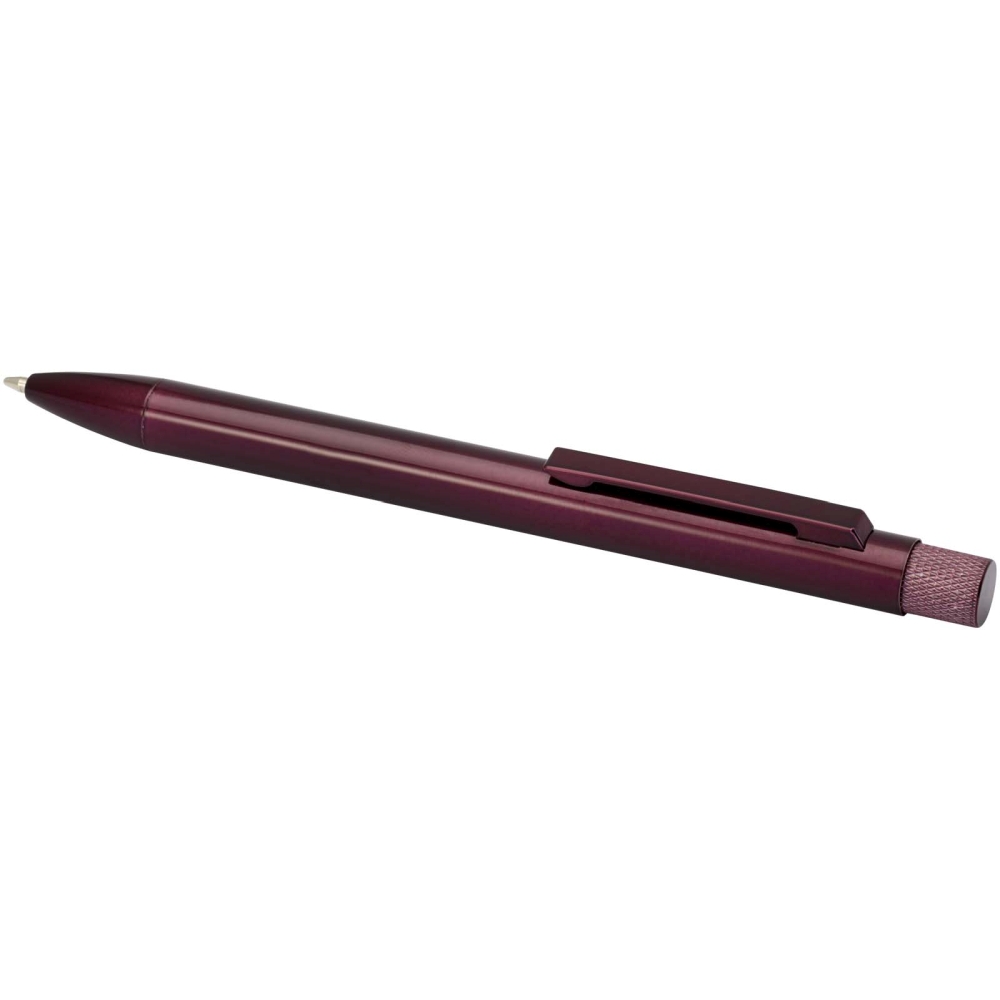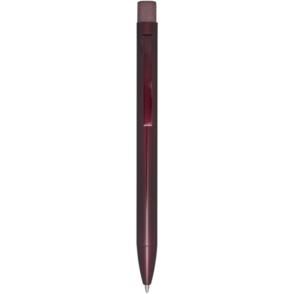 Ballpoint pen with a coloured spray coating. The button and tip are made of brass, the barrel is made of recycled brass, and the clip is made of iron. Ink colour: Black. Writing length: 1000 metres. Nib size: 1.0 mm. Delivered in a gift box. Dimensions: 14 x O 1 cm