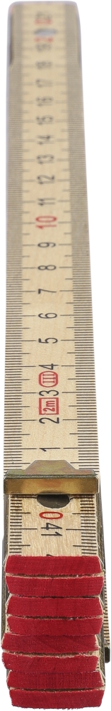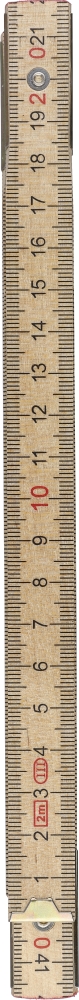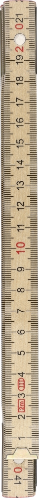 Birchwood foldable ruler with centimeter indication and 2 meter length. Consists of 10 segments with steel hinges for durability and stability, including a corner lock for secure use. Supplied in a paper sleeve. Dimensions: 3,5 cm x 23,5 cm