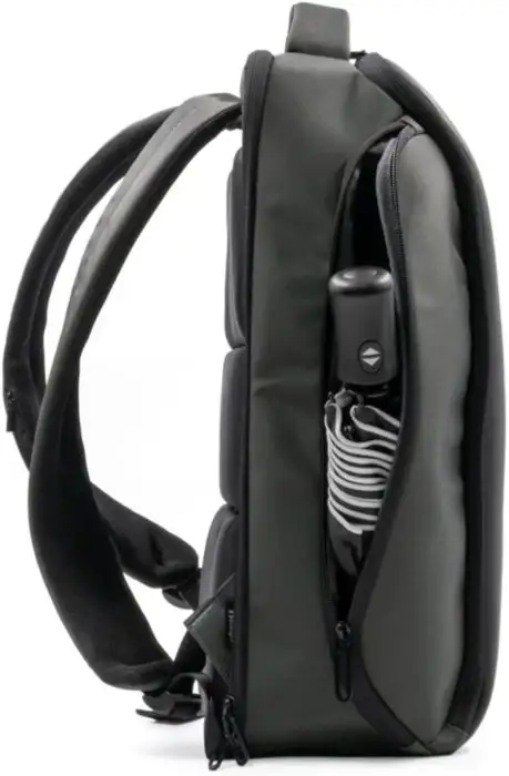 The Virtuo Apex Backpack combines sustainability, functionality, and premium craftsmanship in one sleek design. Made from 800D water- and stain-repellent recycled ballistic fabric and accented with vegan leather, it offers a 22 l capacity with a padded compartment for laptops up to 16 inches. Designed for work, travel, and daily use, it features an anti-theft back plate compartment, integrated eyewear compartment, two side compartments, and a trolley strap. Soft-touch back ventilation padding adds comfort, making the Apex a reliable and stylish companion wherever you go. Dimensions: 15,5 cm x 43 cm