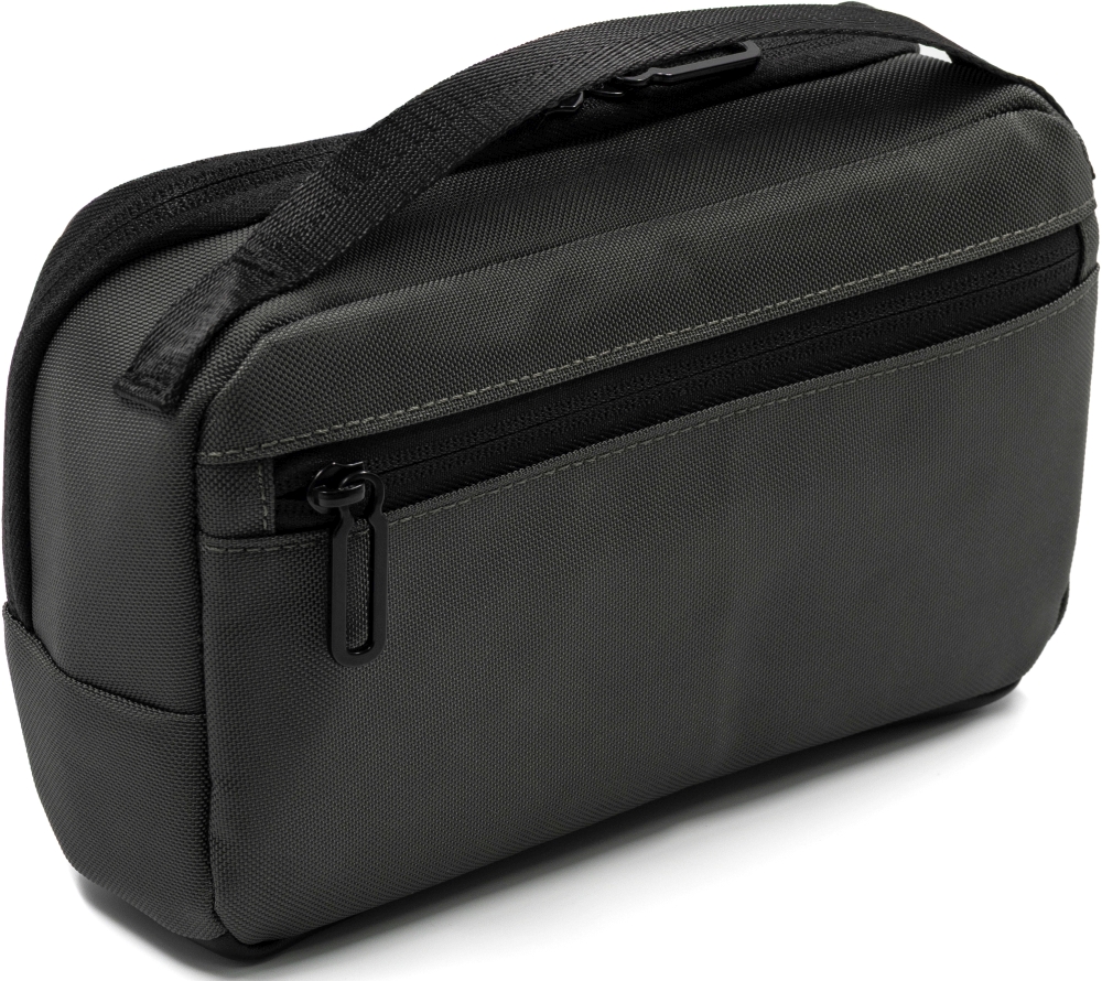Virtuo Ora is a compact and sustainable everyday pouch made from vegan leather and recycled 800D ballistic polyester. Designed for work, travel, and daily use, it offers a 2.2 liter capacity with smart internal organization. The main compartment features five sub-pockets and four elastic loops to keep your essentials like phone, wallet, keys, and cards neatly stored. A separate zippered compartment provides additional secure storage. The pouch includes a removable integrated key clip and a shoulder strap for hands-free carrying. Two gear loops on each side offer attachment options for accessories or a carabiner. Water- and dirt-repellent materials ensure durability and everyday performance. Engraving plates included. Dimensions: 7,5 x 21 cm